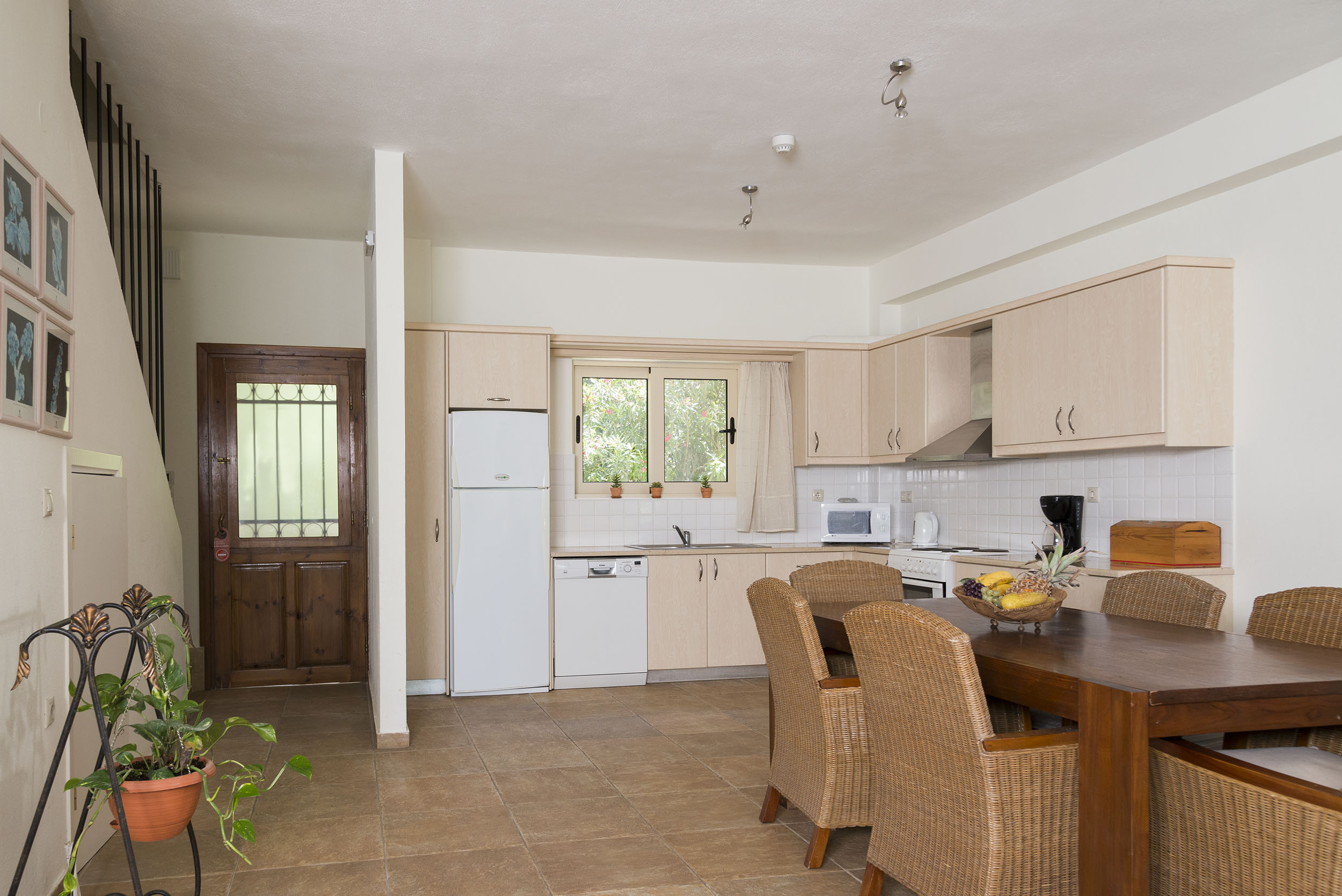 - Η κουζίνα διαθέτει: Βραστήρα, καφετιέρα, τοστιέρα ή φρυγανιέρα, φούρνο μικροκυμάτων, κουζίνα 4 εστιών, μεγάλο ψυγειοκαταψύκτη, πλυντήριο πιάτων, καθώς και τον απαραίτητο εξοπλισμό σε σκεύη κουζίνας.