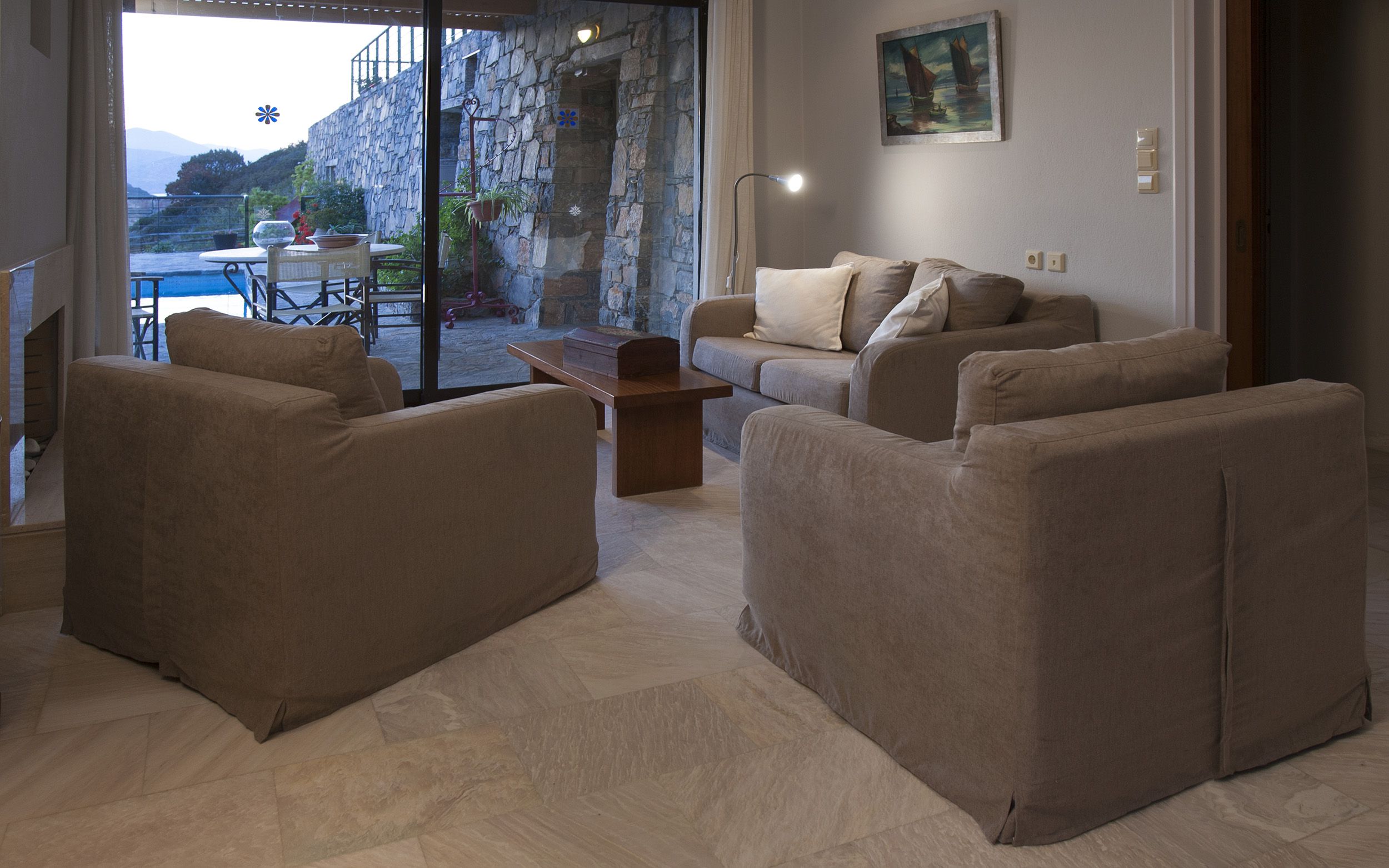 - Το καθιστικό περιλαμβάνει μια πλήρως εξοπλισμένη κουζίνα, μια τραπεζαρία, ένα άνετο σαλόνι και τζάκι.
