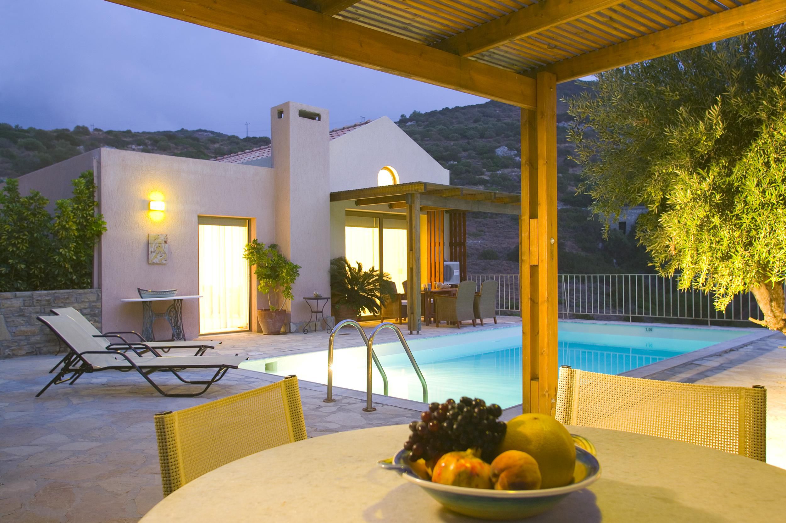 Μπροστά από την πόρτα που οδηγεί στο σαλόνι βρίσκεται μια στεγανή ξύλινη πέργκολα, με ένα μεγάλο μαρμάρινο τραπέζι για φαγητό στην ύπαιθρο. Λίγο πιο πέρα υπάρχει ένα σαλονάκι για τις ώρες της χαλάρωσης και μια ομπρέλα που εξασφαλίζει πρόσθετη σκιά. Η αυλή είναι αρκετά ευρύχωρη ώστε να υπάρχει χώρος για να τοποθετήσει κανείς τις ξαπλώστρες γύρω από την πισίνα. Ένα φορητό ΒΒQ είναι διαθέσιμο κατόπιν παραγγελίας.