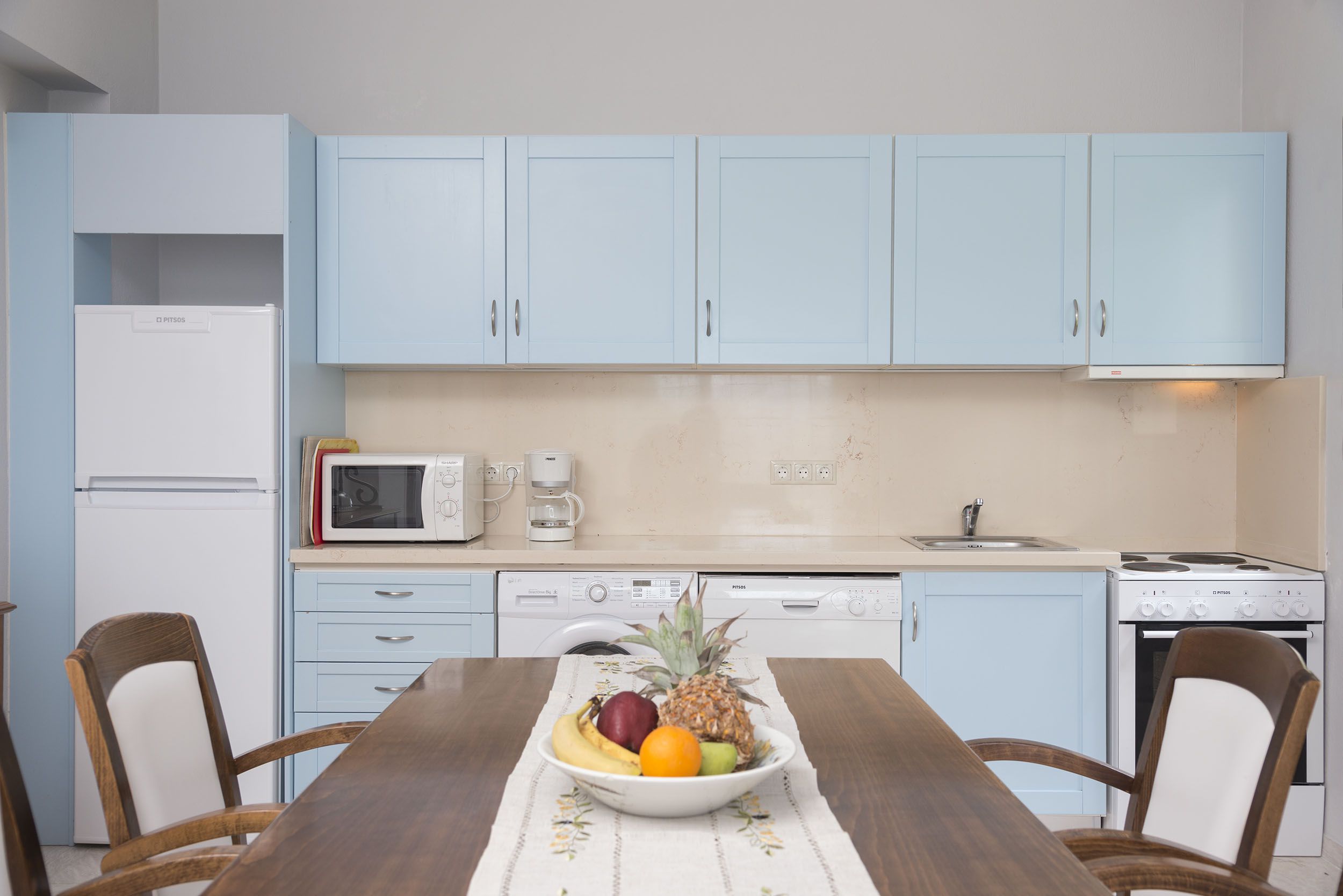 - Η κουζίνα διαθέτει: Βραστήρα, καφετιέρα, τοστιέρα ή φρυγανιέρα, φούρνο μικροκυμάτων, κουζίνα 4 εστιών, μεγάλο ψυγειοκαταψύκτη, πλυντήριο πιάτων, καθώς και τον απαραίτητο εξοπλισμό σε σκεύη κουζίνας.