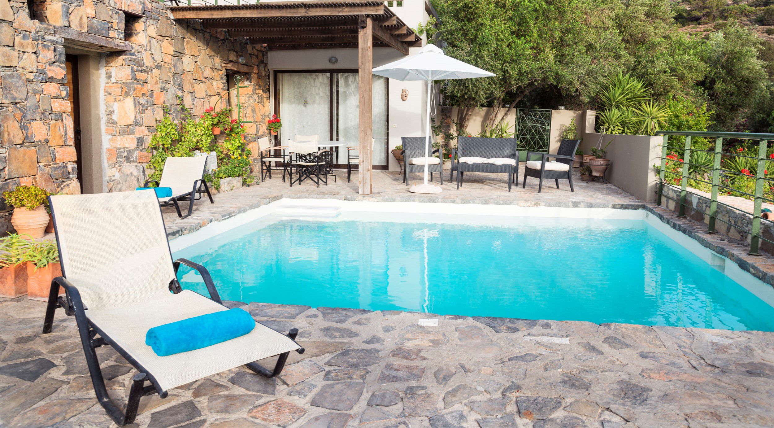 - 1 υπνοδωμάτιο με μπάνιο (με μπανιέρα) με άμεση πρόσβαση στην αυλή που βρίσκεται η πισίνα.