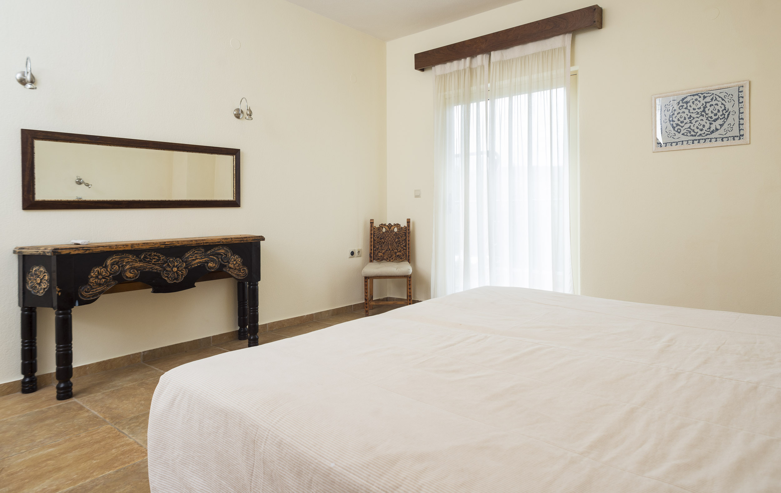 - Μια μαρμάρινη σκάλα οδηγεί στον όροφο, όπου υπάρχουν τα 2 υπνοδωμάτια εκ των οποίων το ένα εχει άμεση πρόσβαση σε ένα μπαλκόνι με θέα τη θάλασσα.