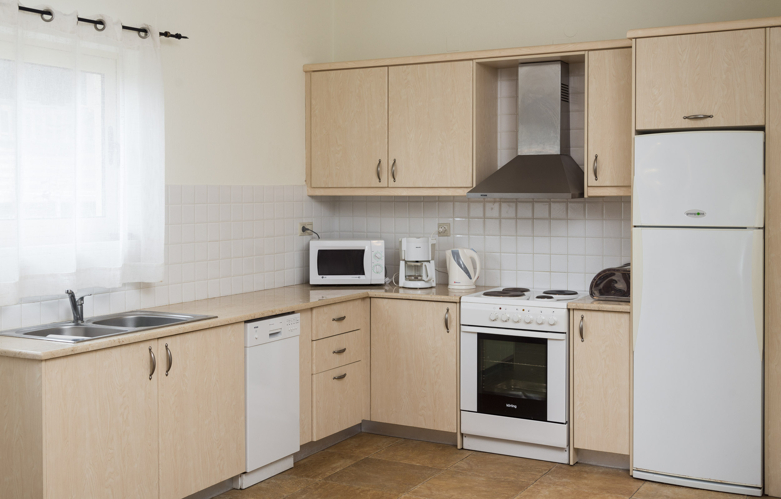 - Η κουζίνα διαθέτει: Βραστήρα, καφετιέρα, τοστιέρα ή φρυγανιέρα, φούρνο μικροκυμάτων, κουζίνα 4 εστιών, μεγάλο ψυγειοκαταψύκτη, πλυντήριο πιάτων, καθώς και τον απαραίτητο εξοπλισμό σε σκεύη κουζίνας.