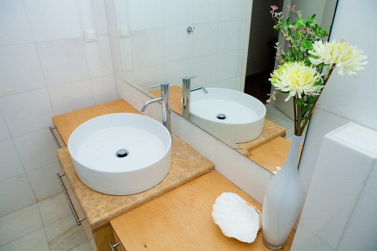 - Το μπάνιο διαθέτει: Προσόψια, λουτροπετσέτες και πετσέτες θαλάσσης, σεσουάρ, καθρέπτη make-up, σαμπουάν αφρόλουτρο, σαπούνι χεριών…