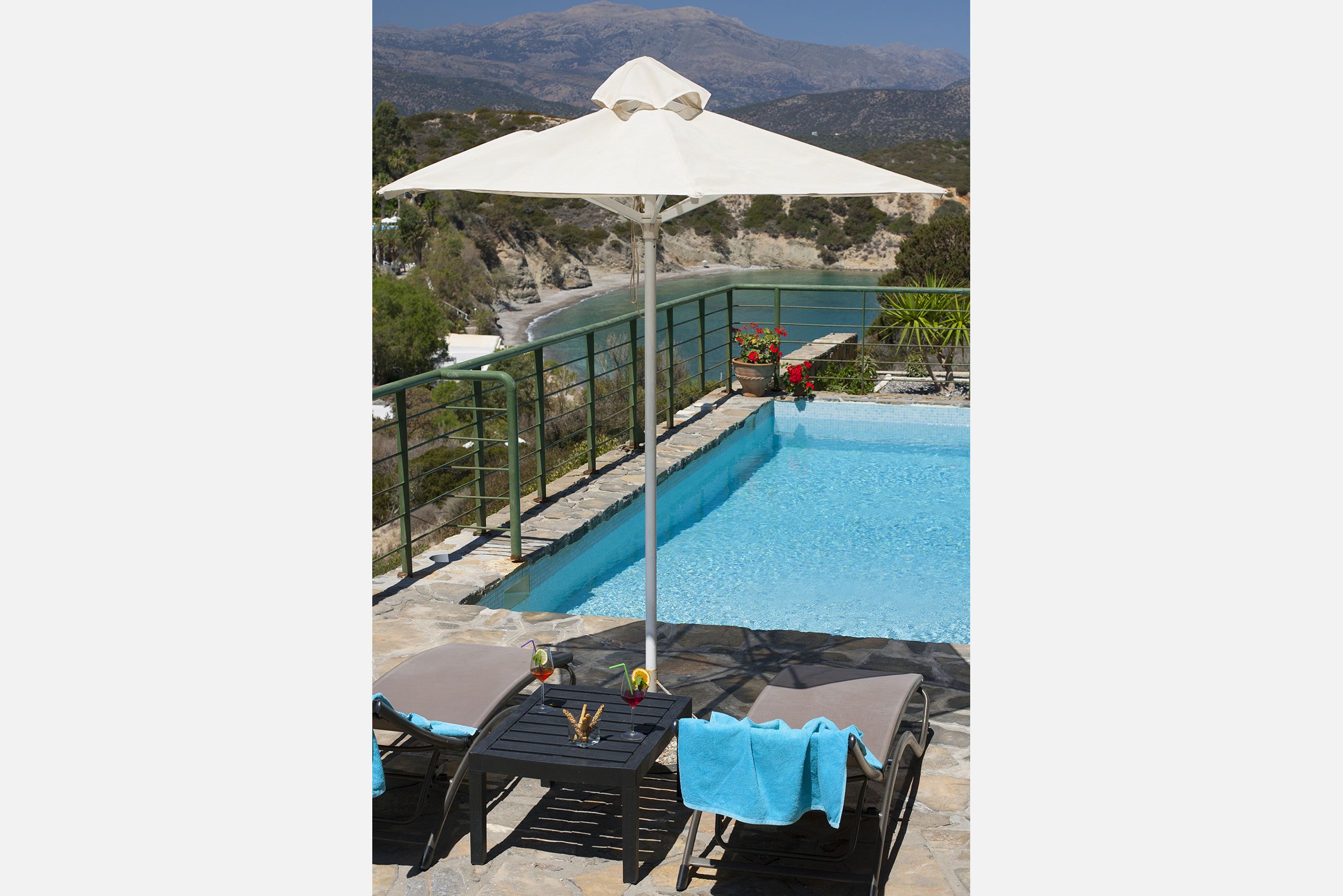 - 1 υπνοδωμάτιο με μπάνιο (με μπανιέρα) με άμεση πρόσβαση στην αυλή που βρίσκεται η πισίνα.